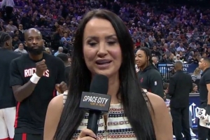 GIF-女记者接受采访 杰夫·格林在后面比比划划抢镜