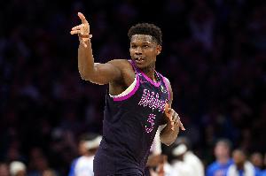 “不知为何,我们总喜欢对他吹毛求疵,因为他会说很多惊人的话,做一些有趣的事,但他有那种魅力,有那种明星气质。而他的比赛表现在很大程度上说明了一切,当你看到他在比赛最后阶段像这样打出表现,用一记后撤步三分击败雷霆,作为球队最好的进攻球员,在防守端全神贯注投入时,这是具有感染力的,他能带动身边的每个人,他有能力在可预见的未来成为最好的攻防一体球员。”