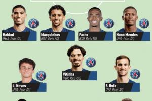 体育资讯12月27日讯 法国媒体队报选出了2025年的法甲最佳阵容。算上只效力半年的多纳鲁马(现已转会曼城),2025年的法甲最佳阵将是格林伍德+巴黎全队。