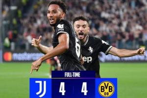 有数据统计称,上次尤文在欧冠与对手踢出4-4的比分还要追溯到25年前,2000年9月13日客场对阵汉堡,因扎吉上演帽子戏法并在第88分钟打进绝平点球。