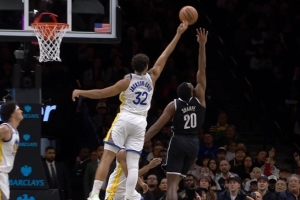 GIF-TJD和夏普抢球出界,篮网挑战成功拿到球权