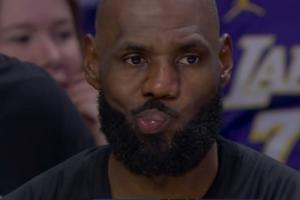 GIF-东契奇扑防犯规 詹姆斯撇嘴
