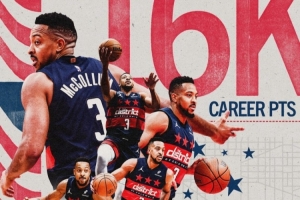 此役,奇才后卫麦科勒姆解锁生涯16000分里程碑,奇才官方分享海报祝贺道:“欢迎加入16000分俱乐部。”