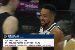 另外四名球员达成此数据的分别是:哈登、库里、利拉德和乔治