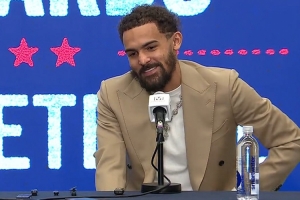 记者:这支球队历史上曾拥有一些出色的后卫。约翰·沃尔很快将被奇才表彰。我不知道你是否熟悉这里的热烈氛围。以你的比赛风格,再加上华盛顿对篮球的热爱,你想对这里的人们说些什么?因为你有实力让这里重现辉煌。