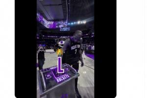 他们将杜兰特按火箭发射按钮的视频改成国王的紫色主题配色,并写上了一个大大的“L(失败)”,并在最后配文“light the beam”。