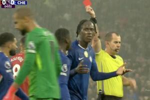 染红瞬间,查洛巴朝桑切斯的方向无奈摊手,眼神很有内容。