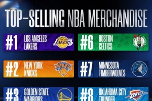 体育资讯1月21日讯 NBA官方公布了25-26赛季上半赛季球队球衣销量排行,该数据均基于NBAStore的销售数据。