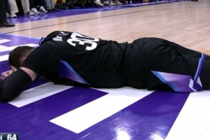 GIF-努尔基奇抢篮板被扫到脸,眉角被打开