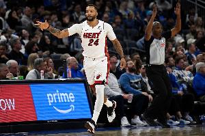 热火球员鲍威尔上半场状态非常不错,他不仅自己三分线外神准,还利用突破两度助攻维金斯命中三分。