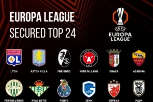 体育资讯1月23日讯 欧联杯联赛阶段第7轮比赛战罢,Football Rankings列出了已经晋级16强或附加赛的球队。