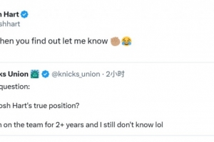 体育资讯9月21日讯 尼克斯球员哈特在社媒转发了一则动态,原文写的是:“看了尼克斯两个赛季球了,但依旧没搞懂,哈特真正打的位置是什么的?”