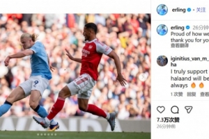在社交媒体上,哈兰德写道:为今天的拼搏感到自豪,感谢你们一如既往的支持。