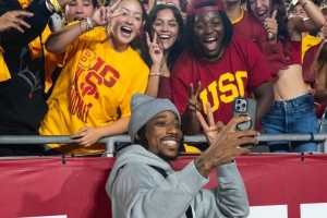 体育资讯9月22日讯 南加大篮球队社媒更新动态,晒出了校友、NBA球员德罗赞回到母校观看校橄榄球队的比赛照片,德罗赞在现场也是热情的和学弟、学妹们互动。