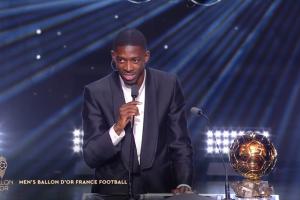 体育资讯09月23日讯 登贝莱获得2025金球奖,他现场领奖并发表获奖感言。