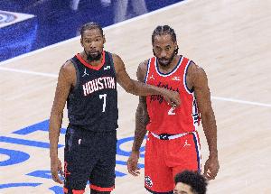 首节比赛,两队核心杜兰特和伦纳德都没有太多发挥,其中杜兰特3中0,三分球2中0,没有得分入账,仅拿到2篮板2助攻的数据;伦纳德4中1,三分球1中0,拿到2分1篮板的数据。