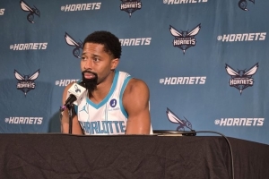 体育资讯9月30日讯 黄蜂媒体日,新援老将丁威迪接受采访。