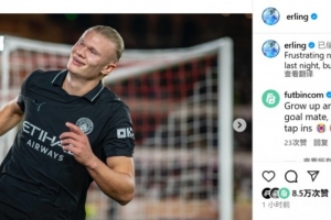 尽管哈兰德在比赛中为曼城打进两球,但仍然未能从客场带走3分,他写道:“昨晚未能拿到3分令人沮丧,但我们将继续前进。 ”