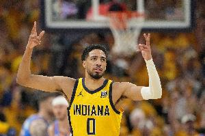 上赛季总决赛G7,哈利伯顿遭遇跟腱撕裂。