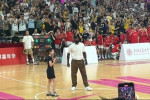 据“东方体育日报”抖音号、“詹姆斯吧官方微博”、微博“演曼巴”、小红书用户“篮球摄手虎”等媒体的报道,詹姆斯到场后向现场球迷招手问好,并帮助场上交大学生球员的比赛完成跳球。
