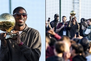 法国足协晒照,登贝莱回到成长之地埃夫勒,向家乡人民展示了他的金球奖。