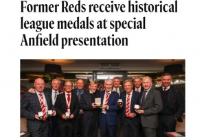 体育资讯10月16日讯 利物浦俱乐部近日在安菲尔德举行了一场特别的颁奖仪式,向14名前球员颁发了联赛冠军奖牌,以表彰他们为球队历史上的20座顶级联赛冠军所做出的贡献。由于当时出场次数资格限制,这些球员在当年遗憾地错过了获得奖牌的机会。