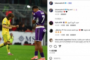体育资讯10月21日讯 在米兰2-1击败佛罗伦萨后,莫德里奇更新社交媒体庆祝胜利。