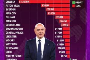 【盈利第一】英超俱乐部在列维时代的盈亏榜:热刺盈利1.67亿镑,排名英超第一!💰