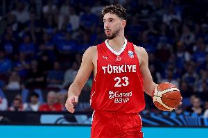 土耳其内线申京上半场在内线优势明显,多次抢到前场篮板,但篮下手感不佳效率较低。