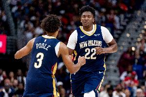 此役鹈鹕后卫普尔出场34分钟14投5中,三分8中3、罚球9中9砍全队最高22分外加2篮板4助攻1抢断,正负值-16。