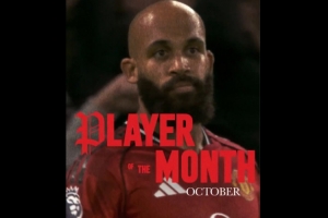 曼联官推发文:“这对于布莱恩而言是意义非凡的一个月。他当选为10月队内最佳球员。”
