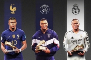 体育资讯11月1日讯 日前,姆巴佩领取2024-25赛季欧洲金靴奖。他是首位在三队分别拿到世界杯金靴(法国队)+欧冠金靴(巴黎)+欧洲金靴奖(皇马)的球员