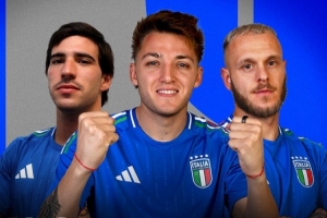 意大利国家队官方社媒发布为此役制作的海报,雷特吉、托纳利以及迪马尔科出镜。