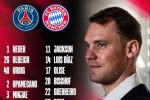 体育资讯11月3日讯 拜仁将在本轮欧冠迎战巴黎,球队也公布了本场大名单,具体如下: