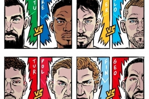 今天,欧锦赛官推晒出了8强对阵的海报,预热1/4决赛。