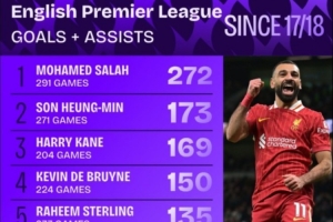 体育资讯9月9日讯 2017年加盟利物浦以来,萨拉赫在进攻端展示出了极高的效率。根据Squawka的数据统计,埃及边锋共出战291场英超比赛,直接参与272球,同期断层领先。