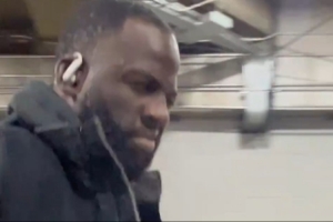 赛前,勇士众将抵达球馆,霍福德带着耳机目光坚定,追梦面对镜头连连点头。