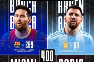 体育资讯11月09日讯 美职联季后赛首轮第三场,迈阿密国际主场对阵纳什维尔,梅西2射1传,解锁生涯400助!