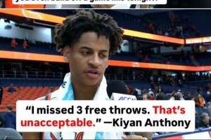 体育资讯11月10日讯 在昨天的NCAA常规赛,雪城大学以83-43狂胜德拉瓦州立大学,取得开季两连胜。卡梅隆·安东尼之子基扬·安东尼迎来大学生涯第一次首发,他11投8中,三分4中2、罚球4中1,砍下19分3篮板4助攻1抢断,没有失误。