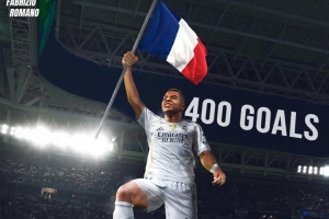 姆巴佩达成职业生涯400球里程碑,知名记者罗马诺社媒晒出海报,对他表示祝贺。