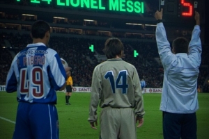 2003年11月16日,16岁的梅西在巴萨对阵波尔图的友谊赛中身披14号球衣替补出场,上演巴萨一线队首秀。当时巴萨的主帅是里杰卡尔德,而波尔图主帅是穆里尼奥。