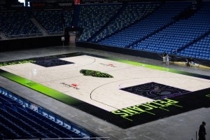 本场比赛,鹈鹕将会穿着球队新赛季的城市版球衣,同时球队也换上了同主题的城市版设计地板涂装。这中场Logo处的鹈鹕都变得更加凶悍了。