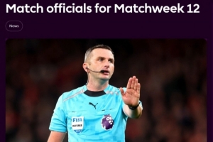 英超第12轮裁判: