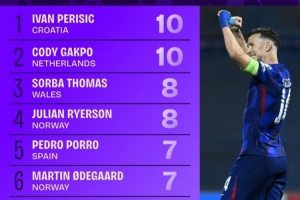 世欧预造良机榜:佩剑、加克波居首,厄德高、奥利塞、维尔茨在列