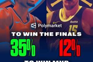 但在夺冠概率上,约基奇所在的掘金(12%)远低于雷霆(35%)。