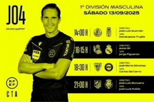 体育资讯9月12日讯 本周末,西甲联赛将重燃战火,西班牙足协官方公布了当地时间9月13日4场比赛的裁判安排。其中,赫苏斯-吉尔执法皇马客战皇家社会,穆努埃拉主裁马竞主场迎战黄潜。