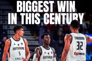 德国男篮此役大胜63分,根据数据统计,这是欧锦赛本世纪至今的最大单场比赛分差。