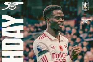 今晚8点半,阿森纳将在英超客场挑战阿斯顿维拉,枪手官推晒出海报预热,萨卡担纲海报主角。