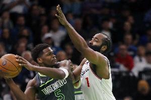 森林狼首发:爱德华兹、麦克丹尼尔斯、迪文岑佐、兰德尔、戈贝尔。