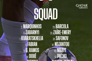 前锋:7-克瓦拉茨赫利亚、9-贡萨洛·拉莫斯、14-杜埃、19-李刚仁、29-巴尔科拉、47-恩贾恩图、49-姆巴耶